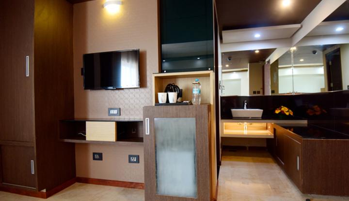 Travelers say the hotel has good facilities including a pool and gym, but limited non-veg options in the dinner buffet. The facilities are well-maintained and offer good value for money. There is also a well-equipped fitness center, spa facilities, and a rooftop pool.