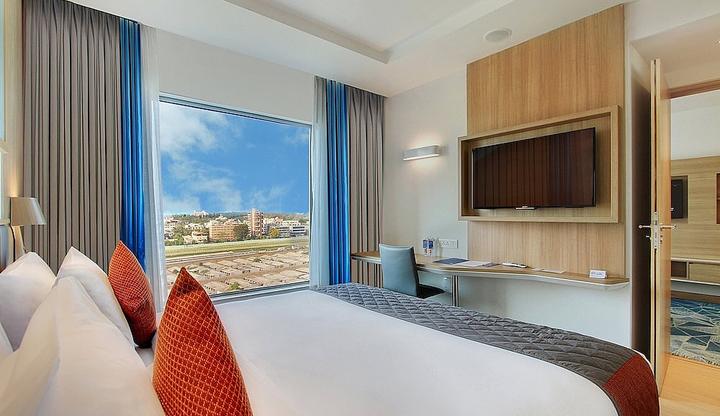Amazing experience at Holiday inn, the ambience of the hotel is amazing and so is the weather of Bangalore. The roof top is the place where you get a beautiful view of the city and the race course! The restaurant is big and the food is good with a lot of options. So is the staff in the hotel and the restaurant. Ms. Josie is very polite and always here to help. Last night while having my dinner a staff came and ask if I want a pizza slice that was a surprise yet nice! And Sayema always welcomed everyone with a smile! Rooms are clean and comfortable.