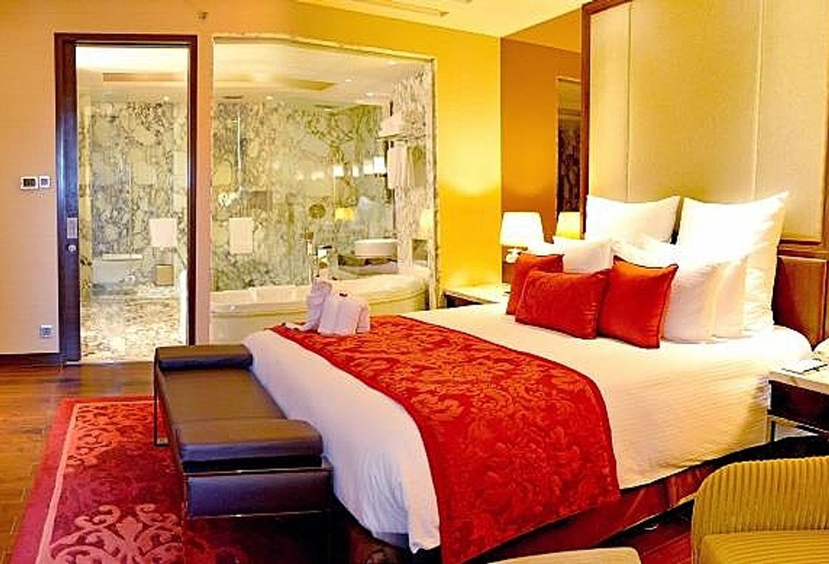 Travelers say the hotel has a convenient location near the airport and is close to malls and bars. The property is luxurious, clean, and the staff is supportive. The food quality is good. However, it lacks scenic views.